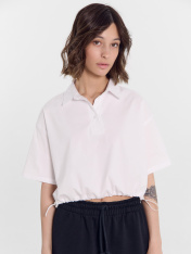 Добавьте в свой гардероб универсальное и стильное решение! Это поло выполнено из натурального хлопка, что обеспечивает комфорт и легкость в течение всего дня. Дизайн продуман до мелочей: круглая горловина, аккуратный отложной воротник и застежка на пуговицах спереди. Спущенное плечо и углубленная пройма создают стильный и расслабленный силуэт. Особенность модели — слегка укороченный фасон с эластичной подгибкой по низу и фиксаторами по бокам, что позволяет подчеркнуть индивидуальность вашей фигуры. Короткий рукав добавляет изящности, а материал гарантирует мягкость и удобство. Комбинируйте это поло с подходящими шортами из той же коллекции для создания гармоничного образа. Такой комплект станет идеальным выбором для прогулок, путешествий или уютных дней дома.