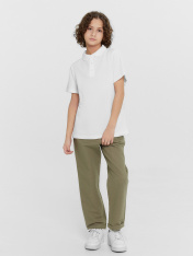 Силуэт прямой. Перед, спинка цельнокроеные. По переду изделия выполнен разрез на застежку на 3 вертикальные петли и пуговицы. В горловину втачен готовый воротник (довяз). Припуск шва втачивания воротника в горловину по спинке окантован бейкой, настроченной по перегибу на спинку между плечевыми швами. Рукава короткие одношовные. Низ изделия и рукавов обработаны швом в подгибку.