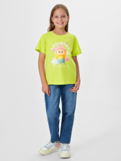 Модная футболка для девочек, выполненная из хлопковой трикотажной кулирки. Силуэт прямой. Перед и спинка без швов и рельефов. Рукава короткие, вырез классический – круглый, не глубокий. Стильная футболка с ярким дизайном!