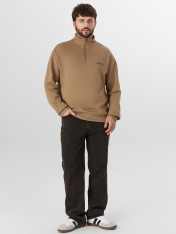 Толстовка изготовлена из трикотажного полотна футер 3х нитка без подчёса._x000D_ Толстовка свободного силуэта. _x000D_ Горловина круглой формы с отрезным воротником стойкой из основного полотна._x000D_ Рукава втачные длинные. Линия плеча слегка спущена. По низу рукавов отрезные манжеты из рибаны._x000D_ По спинке отрезная кокетка, состоящая из двух частей, цельнокроёная с верхней частью рукавов. _x000D_ Центральная застежка на молнию._x000D_ По низу изделия отрезной пояс из рибаны.