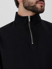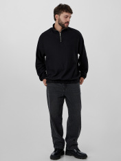 Толстовка мужская изготовлена из трикотажного полотна флис._x000D_ Толстовка свободная, прямая. _x000D_ Горловина округлой формы с воротником стойкой из основного полотна. Шов втачивания горловины _x000D_ спинки закрыт бейкой из кулирки. _x000D_ Рукава втачные длинные. Линия плеча слегка спущена. Нижний срез рукавов обработан швом вподгибку _x000D_ с эластичной тесьмой внутри (3 см). _x000D_ Центральная застежка на тесьму-молнию._x000D_ Нижний срез изделия обработан швом вподгибку с эластичной тесьмой внутри._x000D_