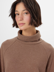 Женский джемпер свободного кроя — уютный и стильный выбор на каждый день. Мягкий селаник приятно прилегает к телу, сохраняет тепло и отличается легкой фактурной поверхностью, благодаря чему модель выглядит объемной и визуально интересной. Горловина-стойка добавляет аккуратности и немного элегантности, делая изделие актуальным как в домашнем гардеробе, так и в повседневных образах. Рукава реглан не ограничивают движения, подчеркивают расслабленный силуэт и создают плавный переход от горловины к рукавам. Обработка низа и манжетов швом в подгибку обеспечивает аккуратную отделку и устойчивость к деформации.