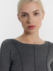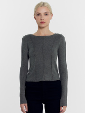 Стильный и оригинальный джемпер женский полуприлегающего силуэта из трикотажного полотна кулирка. Вырез горловины лодочка. Перед с центральным членением и рельефами. Спинка с центральным швом. Рукав втачной, длинный, со средним швом. Комфортная и трендовая модель, которая поможет создать лаконичные и модные образы на каждый день. Дополнить можно низом на свой вкус. Широкий размерный ряд. Рекомендуем!