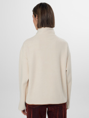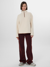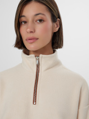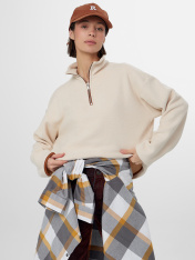 Женская толстовка из мягкого флиса станет уютным дополнением вашего гардероба. Свободный крой с круглой горловиной и стойкой обеспечивает комфорт в течение всего дня. Застежка-молния по центру и мягкие спущенные плечи создают расслабленный силуэт, не сковывающий движений.<br>_x000D_ <br>_x000D_ Длинные рукава и боковые карманы с мягкой подкладкой добавляют практичности. Флисовый материал сохраняет тепло, позволяя коже дышать, и быстро сохнет после стирки. Толстовка подойдет для прогулок, отдыха на природе или домашних дел — в ней вы будете чувствовать себя комфортно в прохладную погоду._x000D_ <br>Универсальный бежевый цвет легко сочетается с джинсами, брюками и леггинсами. Эта модель станет надежным спутником в межсезонье, даря тепло и уют в любой обстановке.