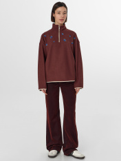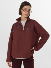 Представляем невероятно мягкую и нежную толстовку, которая станет отличным дополнением вашего гардероба. Модель свободного силуэта с круглой горловиной и воротником-стойкой обеспечивает максимальный комфорт. Центральная застежка на молнию и длинные рукава со спущенной линией плеча делают эту толстовку удобной и практичной. А боковые карманы с подкладкой из кулирки добавляют удобство и функциональность. Изделие выполнено из флиса - мягкого, теплого и дышащего материала, который быстро сохнет и прекрасно сохраняет тепло. Флис также является легким и долговечным, обеспечивая уют и комфорт в любую погоду. _x000D_