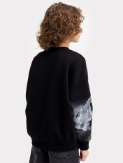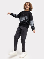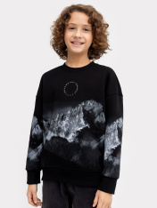 Стильный джемпер для мальчиков из коллекции "Нетронутая красота" выполнен из высококачественного хлопка с интересным принтом. Модель свободного силуэта. Горловина округлой формы из рибаны. Рукава втачные, длинные, с отрезными манжетами. По низу джемпера отрезной пояс. Комфортный и уютный вариант для создания лаконичных городских образов. Дополнить такой детский свитшот можно стильным низом в тон. Широкий размерный ряд. Рекомендуем!