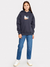 Стильное худи силуэта оверсайз для девочек, созданное из трикотажного футера с теплым подчесом. Модель из коллекции "Нетронутая красота" с принтом в виде надписи "Закрой глаза и представь". Округлая горловина, просторный уютный капюшон, длинные просторные рукава на манжетах - ничего лишнего. Дополнительную свободу дарит спущенная линия плеча. Комфортное и уютное - ваш лучший выбор на прохладное время года. Рекомендуем!