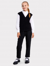 Школьный джемпер-обманка для девочки представляет собой модель свободного силуэта, которая сочетает в себе имитацию жилетки и рубашки. Этот дизайн придает джемперу особый шарм и делает его стильным и оригинальным. Жилет изготовлен из качественного селаника и имеет V-образную горловину. Рубашка, в свою очередь, выполнена из прочной ткани и имеет круглую форму горловины, а воротник украшен стойкой. По переду рубашки расположена центральная застежка на пуговицы, благодаря чему джемпер легко надевается и снимается. Спущенное плечо и углубленная пройма дарят свободу движений. Втачные рукава - длинные, выполнены из той же ткани, что и рубашка. Низ рукава немного расширен и присборен, а по низу - отрезная манжета из ткани, которая создает аккуратный вид. Отличный выбор для создания школьного образа, который сочетает в себе комфорт и стиль. Рекомендуем!