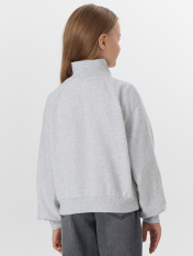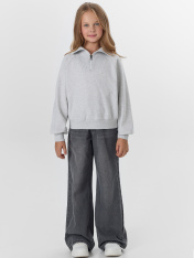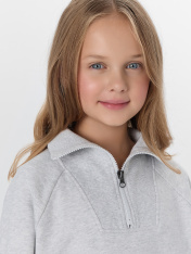 Свитшот для девочек с воротником - это уютная и стильная модель для повседневной носки. Свободный силуэт и спущенная линия плеча обеспечивают полную свободу движений, а длинные рукава реглан мягко облегают руки. Перед и спинка выполнены цельными, что исключает лишние швы и повышает комфорт._x000D_ Круглая горловина дополнена воротником из эластичной рибаны, который мягко прилегает к шее. Практичная застежка-молния по переду упрощает надевание и позволяет регулировать степень открытости ворота. Низ изделия и манжеты рукавов обработаны рибаной - это обеспечивает аккуратную посадку и сохраняет форму после стирок._x000D_ Свитшот для девочек идеален для прогулок, школы или отдыха. Качественный материал гарантирует мягкость и воздухопроницаемость, а лаконичный дизайн сочетается с юбками, джинсами или леггинсами. Эта модель станет универсальным элементом гардероба, даря комфорт и уверенность в любой ситуации._x000D_