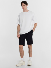 Шорты мужские изготовлены из трикотажного полотна пике.. Шорты прямые, свободные. Пояс цельнокроеный с эластичной тесьмой внутри. На передних деталях обработаны карманы в боковых швах, подкладка кармана из основного полотна. Нижние срезы обработаны швом вподгибку на 2х игольной плоскошовной машине.