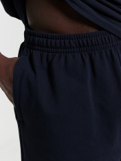 Шорты мужские изготовлены из трикотажного полотна пике.. Шорты прямые, свободные. Пояс цельнокроеный с эластичной тесьмой внутри. На передних деталях обработаны карманы в боковых швах, подкладка кармана из основного полотна. Нижние срезы обработаны швом вподгибку на 2х игольной плоскошовной машине.