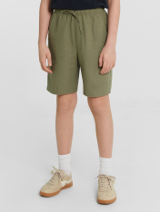 Шорты для мальчиков — отличный вариант на лето. Они выполнены из льна и хлопка, что обеспечивает превосходную воздухопроницаемость и комфорт в жаркую погоду. Модель прямого силуэта со средней посадкой и эластичным поясом на кулиске позволяет легко надевать и снимать шорты, а также обеспечивает оптимальную посадку. Спереди предусмотрена имитация гульфика, что добавляет модели стильности и практичности. А боковые карманы удобны для хранения мелочей. Низ модели обработан швом в подгибку, что придает аккуратный и завершенный вид. Эти шорты станут идеальным выбором для активных мальчиков, обеспечивая комфорт и стиль в течение всего лета._x000D_