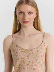 Нежное романтичное платье макси — это воплощение изящества и легкости, созданное для тех, кто ценит утонченный стиль. Модель на регулируемых бретелях прямого силуэта обеспечивает удобную посадку и подчеркивает женственность, создавая элегантный и грациозный образ. Нижние срезы платья обработаны швом вподгибку, что придает изделию аккуратный и завершенный вид. Материал, использованный для платья, — вискоза, известная своей мягкостью, гладкостью и способностью красиво струиться. Она обладает хорошей воздухопроницаемостью и обеспечивает комфорт даже в жаркую погоду, создавая ощущение легкости на протяжении всего дня. Такое платье станет идеальным выбором для романтических встреч, прогулок или праздничных мероприятий, подчеркивая вашу женственность и утончённость. Рекомендуем для вашего гардероба!