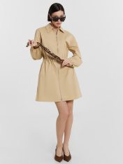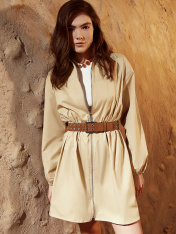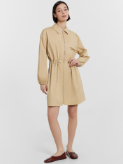 Эффектное мини-платье свободного кроя разнообразит ваш гардероб. Изготовленное из смесового хлопка, оно сочетает в себе комфорт и современный стиль. Стояче-отложной воротник и длинные рукава придают образу изысканность, а спущенная линия плеч гарантирует свободу движений. Присборенная талия подчеркивает фигуру и создает женственный силуэт, а центральная застежка на молнию обеспечивает удобство. Это платье идеально подойдет для любого случая, добавив вашему гардеробу нотку элегантности и удобства. Данная модель предназначена для эпизодического использования.