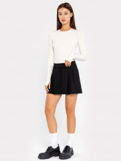 Модная юбка женская мини в складку. Модель А-силуэта из высококачественного материала с добавлением вискозы. Пояс отрезной, из основного полотна. На поясе обработаны шлевки. На передней детали по две односторонние складки. Передняя деталь с центральным швом и имитацией гульфика. Задняя деталь с центральным швом и вытачками. Застежка в боковом шве на потайную молнию. Длина — выше колена. Стильная и оригинальная юбка для создания трендовых образов. Соберите базовую капсулу для повседневных аутфитов на работу, учебу и прогулок по городу. Рекомендуем!