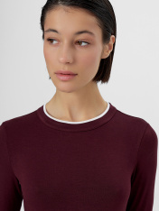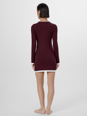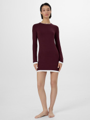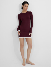 Модель прилегающего силуэта мягко подчеркивает фигуру, сохраняя свободу движений. Глубокий оттенок добавляет образу благородства, а круглая горловина с имитацией двойной обтачки и длинные рукава создают завершенный силуэт. Дизайн дополнен оригинальной деталью по низу платья и рукавов — имитацией поддетого платья, что придает модели стильную многослойность.<br>_x000D_ <br>_x000D_ Если вы ищете женское домашнее платье, которое сочетает уют и эстетику, эта вещь станет идеальным выбором. Женская домашняя одежда из мягких дышащих тканей идеальна для утреннего кофе, отдыха с книгой или вечерней релаксации. Практичный крой и качественные материалы делают платье универсальным элементом гардероба, который легко сочетается с тапочками и уютными кардиганами.<br>_x000D_ <br>_x000D_ Женское домашнее платье — это не просто предмет одежды, а проявление заботы о себе и своем настроении. Наслаждайтесь каждым моментом в гармонии с собой и окружающей обстановкой._x000D_