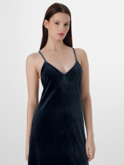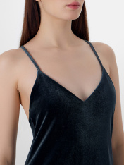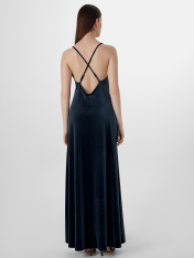 Сарафан из лимитированной коллекции Mark Formelle x Ольга Бузова — модель для важных событий и особых моментов. Изделие выполнено из мягкого велюра с добавлением спандекса, что обеспечивает комфортную посадку и свободу движений. Полуприлегающий силуэт мягко следует за линиями тела, создавая элегантный контур.<br>_x000D_ <br>_x000D_ Глубокий V-образный вырез горловины и открытая спинка с центральным швом добавляют образу женственности и притягательности. Регулируемые бретели на металлических кольцах позволяют точно настроить длину для идеальной посадки. Укороченная подкладка из хлопковой кулирки с эластаном обеспечивает комфорт, не добавляя объема и сохраняя легкость.<br>_x000D_ <br>_x000D_ Длинный макси-крой создает гармоничный силуэт, делая фигуру более стройной. Нижний срез аккуратно обработан для сохранения формы изделия. Этот сарафан станет ярким акцентом на выпускном вечере, свадебном торжестве или романтической встрече, подчеркивая ваш чувство стиля и индивидуальность._x000D_