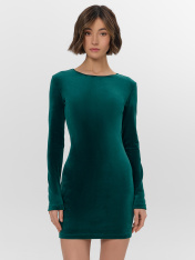 Платье прилегающего силуэта. Горловина круглой формы обработана обтачкой из кулирки _x000D_ (SJ-7, SJ-010.01.170.)._x000D_ Рукава втачные длинные, низ рукавов обработан микрооверлоком._x000D_ Низ платья обработан швом вподгибку. _x000D_ По левой стороне переда разрез (по заданию 154018-1)_x000D_