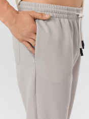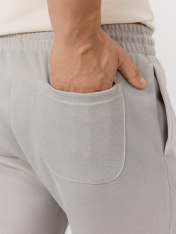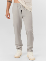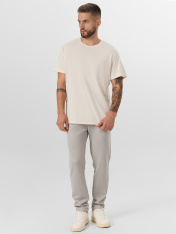 Мужские брюки из интерлока – идеальное сочетание комфорта и стиля. Эта модель прямого силуэта, слегка зауженная к низу, подчеркивает современный и актуальный дизайн. Пояс с эластичной кулиской обеспечивает оптимальную посадку и комфорт в течение всего дня. Карманы в боковых швах добавляют практичности и функциональности, а отвороты на низу брюк придают завершенный и стильный вид. Эти брюки станут отличным дополнением к вашему повседневному гардеробу, позволяя выглядеть элегантно и уверенно в любой ситуации. _x000D_