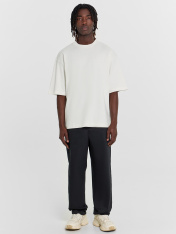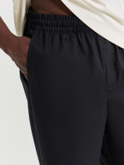 Брюки мужские изготовлены из ткани._x000D_ Брюки прямые, посадка средняя. Пояс цельнокроёный с эластичной тесьмой внутри. С внутренней стороны пробиты петли и втянут шнур с застроченными концами (10PXC-1). На левой детали переда имитация гульфика. По переду карманы с отрезными бочками. Нижние срезы брюк обработаны швом вподгибку. На деталях спинки накладные карманы. _x000D_