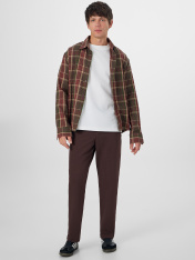 Брюки мужские изготовлены из интерлок (диагональ)._x000D_ Брюки зауженные книзу, посадка средняя. Пояс цельнокроёный с эластичной тесьмой внутри. С внешней стороны пробиты петли и втянут шнур с застроченными концами. На левой детали переда имитация гульфика. По переду карманы с отрезными бочками. На правой детали спинки имитация кармана "в рамку с листочкой". Нижние срезы брюк обработаны швом вподгибку.