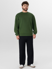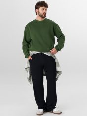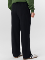 Брюки изготовлены из полотна трикотажного интерлок (академик). _x000D_ Брюки прямые, свободные._x000D_ Детали брючин переда и спинки со средним швом. _x000D_ Пояс отрезной с эластичной тесьмой внутри. С внешней стороны пояса пробиты петли и втянут шнур 8EKXWC-1, 8 мм с эглетом. _x000D_ В боковых швах обработаны карманы._x000D_ На задней правой половинке накладной карман_x000D_ Нижние срезы брюк обработаны швом вподгибку.