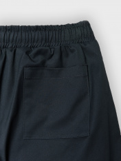 Брюки прямые, свободного кроя, посадка средняя._x000D_ Пояс отрезной с эластичной тесьмой внутри. Шнур 10 PXC-1 с застроченными концами выводится через петли на внутренней части пояса._x000D_ На деталях переда карманы с отрезным бочком. В среднем шве имитация гульфика. На уровне колен от боковых швов заложены по одной складке._x000D_ На задней правой части брюк накладной карман._x000D_ Нижние срезы обработаны швом в подгибку с закрытым срезом._x000D_
