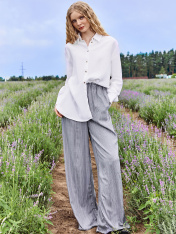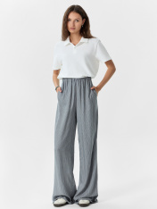 Женские брюки прямого свободного силуэта — это идеальный выбор для тех, кто ценит непринужденный стиль и комфорт в повседневной жизни. Средняя посадка обеспечивает удобную посадку по талии, а эластичный пояс мягко фиксирует изделие, подстраиваясь под индивидуальные особенности фигуры без ощущения сдавленности. Боковые карманы, спрятанные в швах, добавляют функциональности, не нарушая лаконичность дизайна. Нижние срезы аккуратно обработаны швом в подгибку, что придает завершенный вид и способствует сохранению формы изделия после стирок. Изготовленные из вискозы, брюки отличаются мягкостью, легкостью и хорошей воздухопроницаемостью. Ткань красиво драпируется, создавая плавные линии и ощущение легкости при движении. Универсальная модель, которая отлично сочетается с футболками, рубашками или свитшотами — прекрасный базовый элемент как для домашнего образа, так и для прогулок в теплую погоду._x000D_