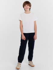 Брюки для мальчиков идеально дополнят спортивные образы. Изделие выполнено из мягкого футера с подчесом, обеспечивающего комфорт и долговечность. Модель свободного силуэта имеет боковые карманы с подкладкой из нежной кулирки, добавляющие практичности. Эластичный пояс на кулиске обеспечивает удобную посадку. Прекрасный выбор для активных мальчиков!