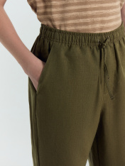 Брюки прямого силуэта для мальчиков, выполненные из премиального льна и натурального хлопка. Посадка средняя. Пояс с эластичной тесьмой и шнуром-завязкой. Есть удобные боковые карманы для мелочей и имитация гульфика. Нижние срезы брюк с отворотами. Комфортны в носке, не сковывают движения. Материал изделия прекрасно держит форму, не скатывается после стирок и позволяет коже дышать в жаркий день. Практичный вариант для ежедневной носки. Рекомендуем!