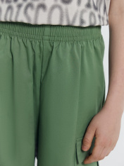 Стильные брюки для мальчиков карго из высококачественного хлопка. Модель имеет высокую посадку. Пояс с эластичной тесьмой внутри. На передних деталях карманы с отрезным бочком. По боковым швам накладные карманы с клапаном. На середине колена, передней детали заутюженные декоративные складки. Материал изделия прекрасно держит форму, не скатывается после стирок и позволяет коже дышать в жаркий день. Практичный вариант для ежедневной носки. Широкий размерный ряд. Рекомендуем!