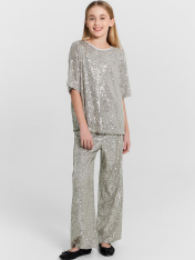 Брюки с пайетками для девочек станут ярким акцентом в образах, когда нужно выглядеть особенно. Эта модель свободного силуэта идеально подойдет для создания эффектных и стильных нарядов. Изделие выполнено в два слоя: нижний слой из нежной кулирки, обеспечивающей мягкость и комфорт при носке, и верхний слой из сетки, расшитой мерцающими пайетками, которые добавляют блеска и волшебства. Эти брюки создадут незабываемый образ и подарят ощущение праздника в каждой детали!