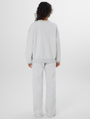 Женский костюм из мягкого футера с начесом создан для повседневного комфорта. Свитшот свободного кроя с цельнокроеными передом и спинкой обеспечивает свободу движений. Спущенный рукав и горловина с отделкой из рибаны дополнены эластичными манжетами и поясом.<br>_x000D_ <br>_x000D_ Брюки прямого силуэта с поясом на широкой резинке удобно сидят на талии. Практичные боковые карманы с мягкой подкладкой позволяют безопасно носить телефон и мелочи, сохраняя свободу движений. Аккуратно обработанный низ брюк обеспечивает сохранение формы и защищает край от истирания даже после многих стирок.<br>_x000D_ <br>_x000D_ Сбалансированный состав из хлопка и полиэстера обеспечивает тепло, воздухообмен и сохранение формы после стирок. Идеальный вариант для прогулок, отдыха или встреч с друзьями — костюм сочетает уют и продуманную функциональность для активного образа жизни.