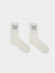 рис.3331 Женские носки высокие с плотным бортом и рисунком в виде надписи "А что это у вас на носу?" на участке резинки.