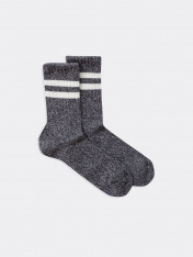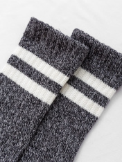 рис.1551 Женские носки высокие классические из толстого хлопка Мулине, с рисунком в виде двух полосок на борту, перекидка лапшей.