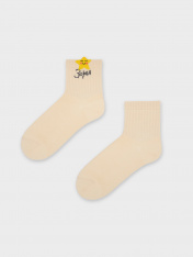 рис.3163 Женские носки средней высоты, с плотным бортом и рисунком в виде звездочки с 3D элементом на бортике и надписью "Зорка".