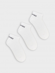 Стиль, комфорт и практичность для активного ритма жизни! Этот набор укороченных спортивных носков станет идеальным дополнением к вашему гардеробу. Выполненные из натурального хлопка, они обеспечивают мягкость, отличную воздухопроницаемость и комфортв течение всего дня, помогая ногам оставаться свежими даже при активных нагрузках. Особая сетчатая вставка на передней части способствует лучшей циркуляции воздуха, предотвращая перегрев, а эластичная структура материала гарантирует надежную посадкубез дискомфорта. Логотип бренда добавляет стильный акцент, придавая моделям динамичный и современный вид. Укороченный фасон идеально подходит для спортивной обуви, делая носки незаметными, но при этом сохраняя удобство и защиту. Прекрасный выбор длятех, кто ценит сочетание функциональности и актуального дизайна! В наборе: 3 пары