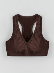 Топ спортивный из трикотажного полотна интерлок. Вырез горловины V-образный, спинка борцовкой. Перед на подкладке из сетки, с чашками-вкладышами GNv-15.04._x000D_ Пройма и горловина обработаны бейками в 4 сложения из основного полотна._x000D_ _x000D_ По низу изделия отрезной пояс из основного полотна с эластичной тесьмой внутри _x000D_ (30 RV)._x000D_