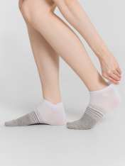 Женские спортивные носочки короткой длины — это удобная и функциональная модель для активного образа жизни. Благодаря Y-образной пятке носки плотно облегают стопу, не сползают и не образуют складок, обеспечивая комфорт при движении. Изделие выполнено из хлопка с добавлением эластана и полиамида, что делает материал мягким, дышащим и износостойким. Такая комбинация обеспечивает хорошую посадку, отвод влаги и долговечность даже при интенсивной носке. Короткая длина делает носки незаметными в обуви и особенно удобными в тёплое время года. Отличный выбор для тренировок, прогулок и повседневной активности.