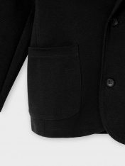Однобортный жакет для мальчиков прямого силуэта. Без подкладки. С накладными карманами. Рукава двухшовные длинные втачные. Застежка на 2 пуговицы. Низ жакета и рукавов обработан на плоскошовной машине швом в подгибку.
