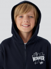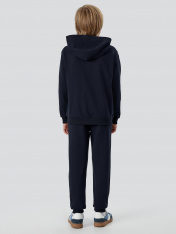 Синий спортивный костюм для мальчиков — это комфорт и свобода для активного отдыха. Набор из худи и брюк выполнен из хлопка, который обеспечивает мягкость, воздухообмен и безопасность для детской кожи._x000D_ Худи свободного кроя с капюшоном и молнией защищает от ветра, а практичный карман-кенгуру позволяет хранить мелочи. Брюки прямого силуэта с эластичным поясом и регулировочным шнурком обеспечивают идеальную посадку для любых активностей — от игр на улице до занятий спортом.<br>_x000D_ <br>_x000D_ Этот костюмподойдет для прогулок, школы или отдыха. Если вы ищете, где купить детский спортивный комплект, который сочетает натуральные материалы, продуманный крой и яркий дизайн, этот набор станет отличным выбором._x000D_