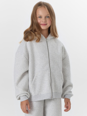 Толстовка свободного силуэта, с капюшоном._x000D_ Горловина округлой формы. Капюшон на подкладке из основного полотна. Шов притачивания закрыт х/б тесьмой_x000D_ Рукава втачные длинные, плечо спущено. По низу рукава отрезная манжета из рибаны. Центральная застежка на тесьму молнию. По переду накладные карманы кенгуру._x000D_ Пояс отрезной из рибаны._x000D_ Брюки свободные. Пояс цельнокроеный с эластичной тесьмой внутри 30RV. С внешней стороны пояса пробиты петли и втянут шнур 8PXC-2. Низ изделия швом в подгибку_x000D_