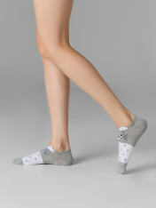 рис.2748 Мультипак из трех пар ультракоротких женских носков, с рисунком в виде мордочки с 3D-ушками на бортике. Составляющие: 397A-2749, 397A-2750, 397A-2751