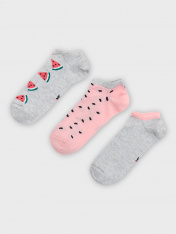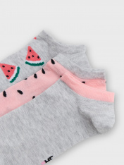Короткие детские носки мультипак (3 пары) из высококачественного хлопка с рисунком в виде арбузиков. Натуральные волокна отлично пропускают воздух и впитывают влагу, дарят ощущение комфорта в течение дня. Благодаря небольшому количеству эластана в составе, короткие носки удобно сидят и не сползают, хорошо тянутся и легко надеваются. Пятка и мысок дополнительно укреплены для защиты от протирания. Резинка мягко, но надежно удерживает носки, не оставляя на коже следов. В ассортименте Mark Formelleможно выбрать самые разнообразные дизайны и расцветки: однотонные зеленые, желтые, синие или серые детские носки подойдут и для мальчика, и для девочек, найдутся модели в полоску, с оригинальными авторскими рисунками, орнаментами, а также базовые носки белые и черные детские. Маленьким модникам точно понравятся!
