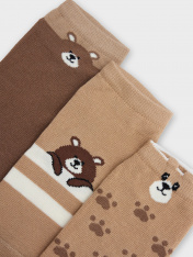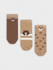 рис.3178 Мультипак из укороченных детских носков с рисунком в виде лапок, полосок и мишек с элементом пикота. Составляющие: 406A-3179, 406A-3180, 406A-3181