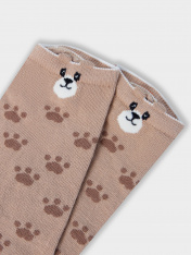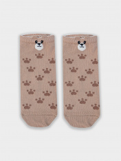 рис.3179 Детский укороченный носок с рисунком в виде лапок и мишек с элементом пикота.