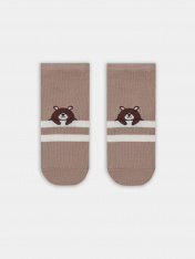 рис.3180 Детский укороченный носок с рисунком в виде полосок и мишки.