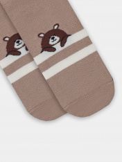 рис.3180 Детский укороченный носок с рисунком в виде полосок и мишки.