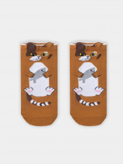 рис.3183 Детский укороченный носок с рисунком в виде котика.