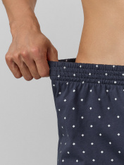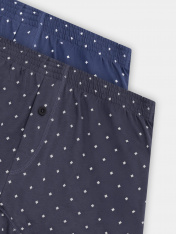 Набор из двух мужских трусов-шорт создан для повседневного комфорта. Модели выполнены из натурального хлопкового трикотажа, который обеспечивает нежное прилегание к телу и обладает превосходными дышащими свойствами. Широкая эластичная резинка в поясе мягко фиксирует изделие, не создавая давления, а плоские швы исключают трение даже при активном движении._x000D_ Функциональный гульфик с декоративной пуговицей подчеркивает продуманность дизайна. Натуральный материал обладает высокой воздухопроницаемостью и гипоаллергенными свойствами, обеспечивая комфорт даже для чувствительной кожи.<br>_x000D_ <br>_x000D_ Практичный комплект из двух пар подходит для ежедневной носки и активного образа жизни. Качественная ткань сохраняет форму и мягкость после множества стирок. Набор станет надежным решением для тех, кто ценит удобство в базовых элементах гардероба._x000D_